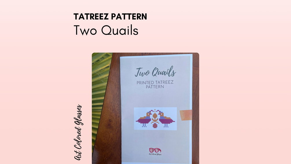 Stitch this original motif inspired by the Gambel's Quail I see running back and forth outside of my window. The design builds off of traditional bird motifs from Palestine.